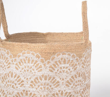 Handwoven & Floral Printed Jute Basket