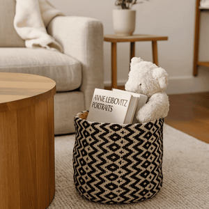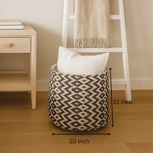 A cotton basket that blends texture, function, and sustainability. Organize with intention using ourHandwoven Cotton & Jute Basket—a minimalist storage piece crafted from natural fibres and shaped by hand. Featuring a clean monotone design and earthy texture, this basket is perfect for storing throws, toys, or even doubling as a planter for your favourite indoor greens.