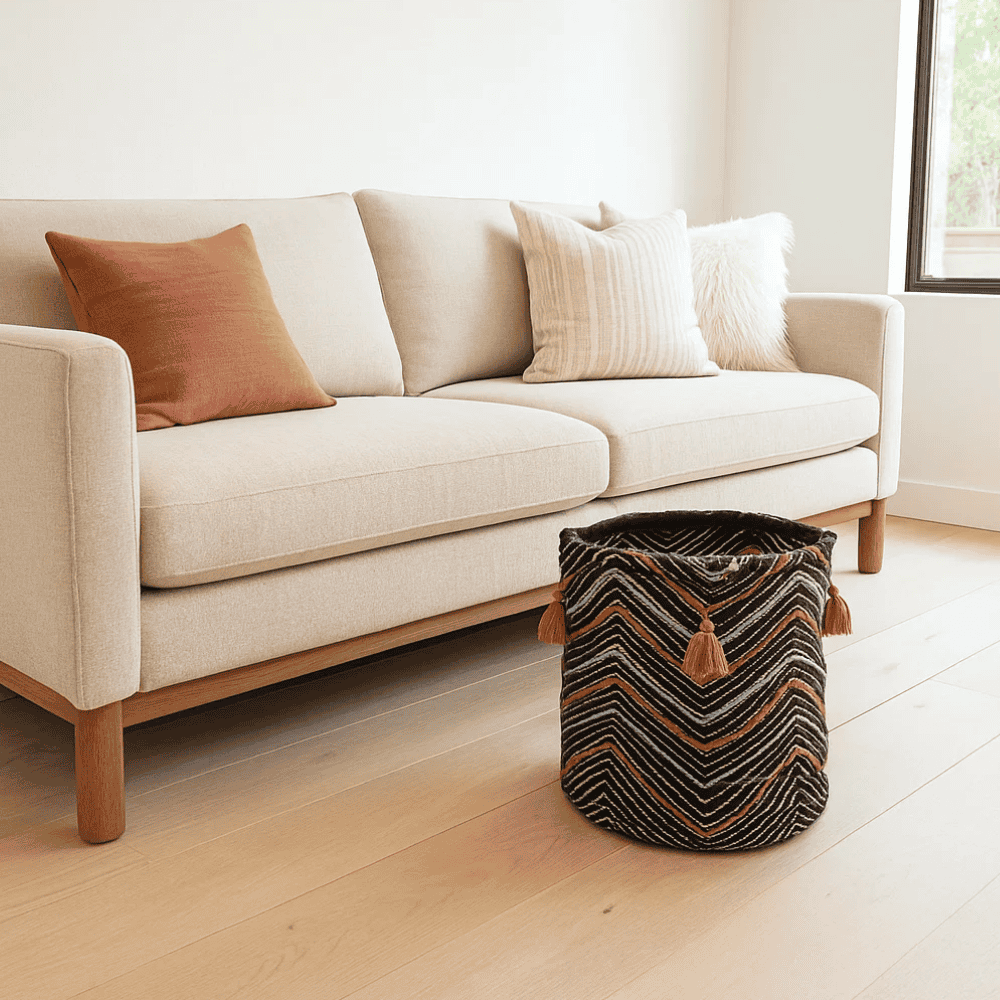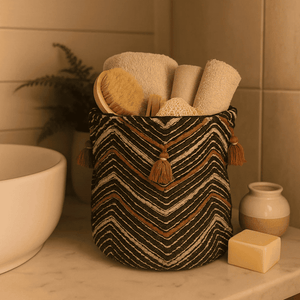 Organize with soul 🌿 — grab yourzig-zag cotton storage basket before it’s gone. Artisan accents like this don’t stay in stock for long.