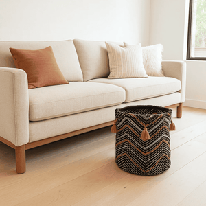 Crafted with care and full of character, thisstorage basket is handwoven from soft cotton strands in a bold zig-zag pattern. Designed by skilled artisans without the touch of machines,it’s a beautiful blend of texture, utility, and slow craft.