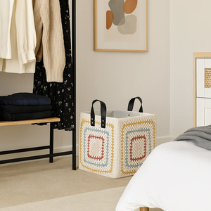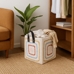 Bring vintage-boho charm into your home with thiscrochet square cotton foldable storage hamper. Handcrafted by women artisans from Narsapur — a region celebrated for its 150-year-old crochet tradition — thiscotton storage hamper is made with love, skill, and cultural heritage.