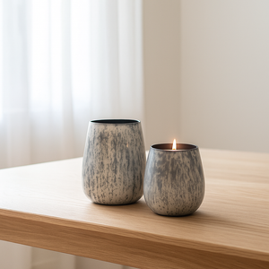 These monochrome glass votives arequiet stunners. With their textured finish and timeless black-and-white palette, they bring a sense of calm sophistication to any space.Each piece is handcrafted by skilled glass artisans, so no two are exactly alike—andthat’s part of their charm.