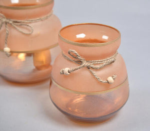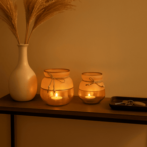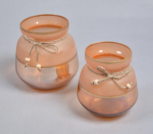 Toned Jute Ribbon Glass Votives – Handcrafted Candle Holder (Set of 2)