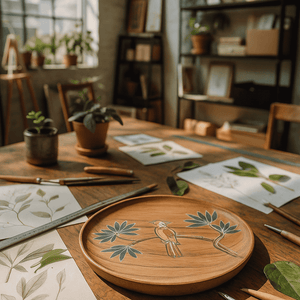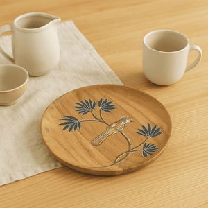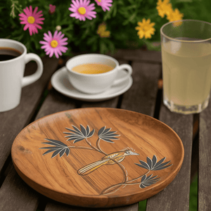 Looking for a platethat’s more than just a dish? Thisacacia wood plate is hand-enamelled with a beautiful bird-on-a-branch design that brings nature right to your table.It’s small, lightweight, and perfect for serving snacks, desserts, or simply adding a touch of charm to your kitchen shelf.