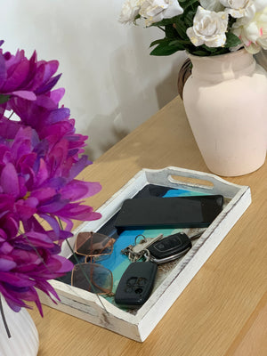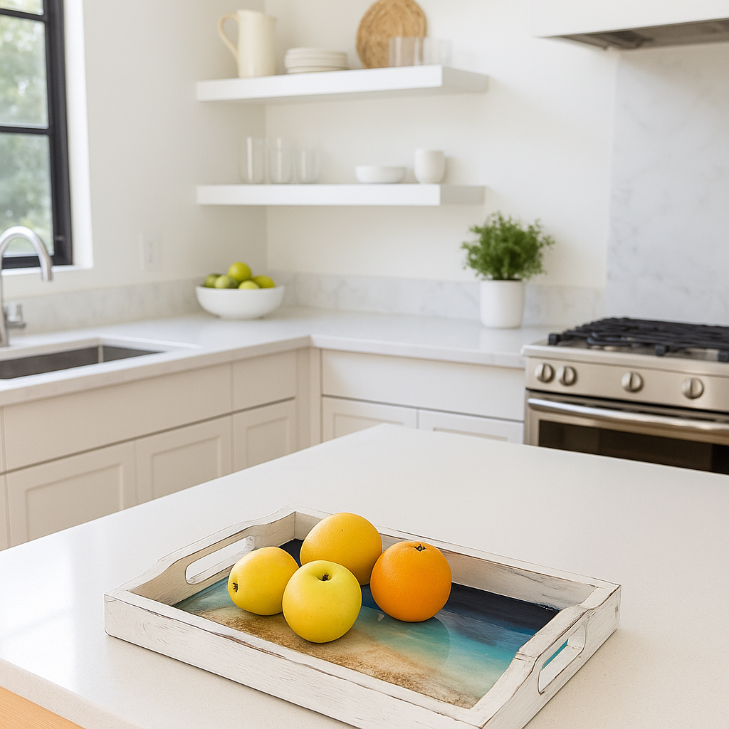 Art Meets FunctionThismango wood tray ishand carved and finished with abstract enamel detailing.It’s a one-of-a-kind piece that adds texture and style to your dining table, coffee table, or kitchen counter. Whether you're serving snacks or displaying decor, this tray makes a bold statement.