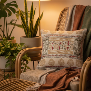 Bring Nature Indoors with Soft Cotton Comfort This cotton cushion cover features a hand block-printed floral design that adds a gentle, natural touch to your home. Whether it’s on your sofa, chair, or bed, it brings calm and charm to any space.