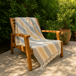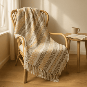 Add a touch of artisan comfort to your space 🌿 — yourcotton chevron-striped throw is ready to make every corner feel more inviting.