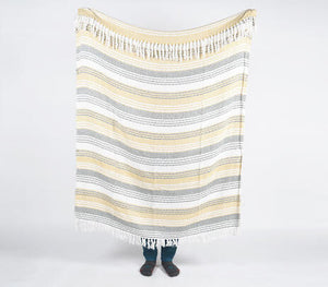 Wrap yourself in comfort and craft with thiscotton chevron-striped throw, handwoven by skilled artisans using traditional looms. The soft cotton weave is breathable yet warm, making it perfect for year-round use. Finished with playful tassels,it’s a piece that adds both texture and personality to your sofa, bed, or reading nook.