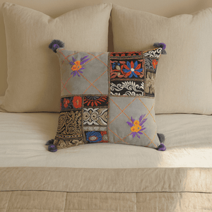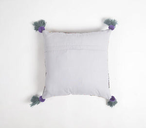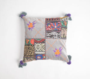 Crafted from upcycled saree patches and finished with soft tassels, thiscotton cushion cover is a celebration of texture, tradition, and thoughtful design. Each piece is handmade by North Indian artisans, giving it a one-of-a-kind charm that adds warmth to any space.