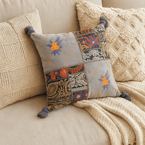 With its subtle grey tones and patchwork detailing,it’s perfect for layering on yoursofa,accent chair, or bed. Whether you're styling a cozy corner or refreshing your lounge, thissofa cushion cover brings a quiet elegance that feels both grounded and elevated.
