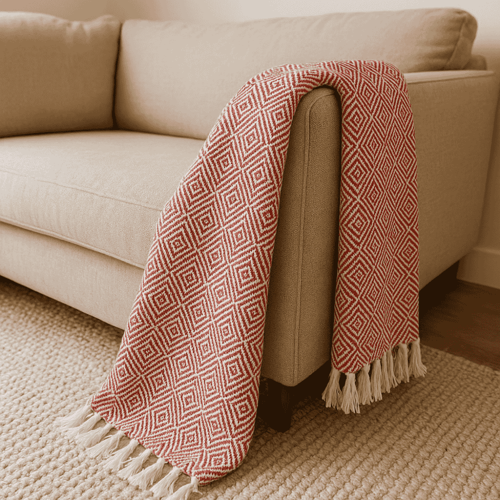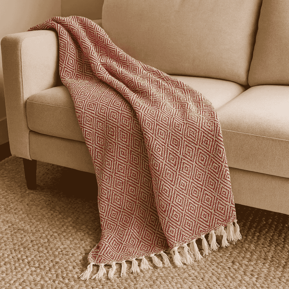 Handwoven Cotton Geometric Tassel Throw – Soft Artisan Blanket