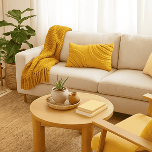 Each cushion cover is lovingly handwoven by skilled artisans in North India, using traditional techniques that give it a rich, tactile feel.The shaggy tufts are created by looping yarn through the cotton base, adding depth and softness that machine-made coversjustcan’t match.