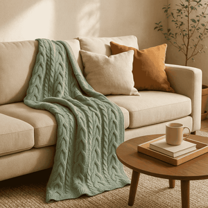 Wrap yourself in warmth and story. Looking for a throwthat’s cozy, stylish, and full of heart? OurKnitted Sage Green Cotton Throw Blanket is just the thing. Handcrafted by skilled artisans using traditional knitting techniques, this piece brings soft texture and soothing colour to your living room, bedroom, or reading nook.
