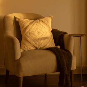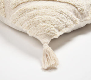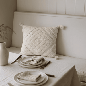 Minimalist in colour, maximalist in texture — thiswhite cushion cover is handwoven from breathable cotton and finished with a shaggy diamond pattern that adds depth and softness to any space. Whether you're styling a neutral sofa or layering up a cozy reading nook, thiscotton cushion cover brings warmth and artisan charm to your interiors.