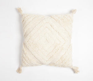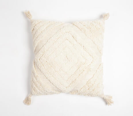 Shaggy Diamonds White Cushion Cover - Handmade Cotton Cushion Cover