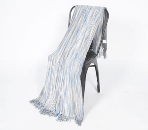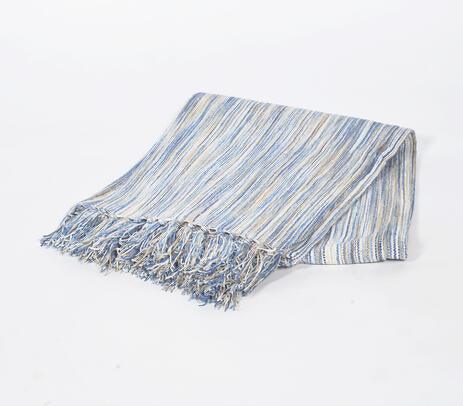 Handcrafted with Skill and Soul Artisans in India weave each throw using traditional techniques passed down through generations. The abstract stripe design is created with careful rhythm and coordination, while the tassels are tied by hand for a relaxed finish. Every piece is unique, with slight variations that show its handmade beauty.