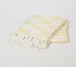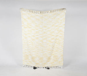 Gleemium brings to you this spectacular cotton throw, handwoven on a wooden loom to utter perfection by proficient craftspeople in North India. It takes anywhere between a few days to a couple of weeks to create one such throw! The creation process may be unhurried as compared to its machine-made equivalent; however, the final product bears that unique artisanal punch of exclusivity! First, a master craftsman creates a blueprint of the design, indicating the colors and layout of the proposed offering, and then weaves magic. Handweaving is a craft to reckon with as it requires meticulous rhythm and coordination and often, bare feet to judge the yarn. Contributing to 95% of the world's handwoven fabrics, manual looms are an indispensable part of India and employ 4.4 million families across the subcontinent. An urbane color palette makes this an exemplary pick for contemporary living spaces