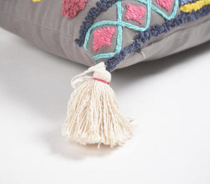Tailored with love, this eclectic cushion cover has been brought to you by Gleemium and crafted by talented North Indian artisans. Adorned with tassels and vibrant color palette, this cover is a picture of sheer elegance and sophistication, perfect for contemporary homes. It also features a concealed zip closure for convenience. This textile is a result of skillful embroidery and its process may be unhurried but it bears the artisanal stamp of exclusivity! The stylistic touches visibly sprinkled on to this product are the results of intently performed work. With the urbane color palette, this cushion cover is an exemplary pick for contemporary living spaces