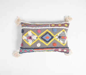 Diamond Embroidered Ecelctic Tasseled Lumbar Cushion Cover