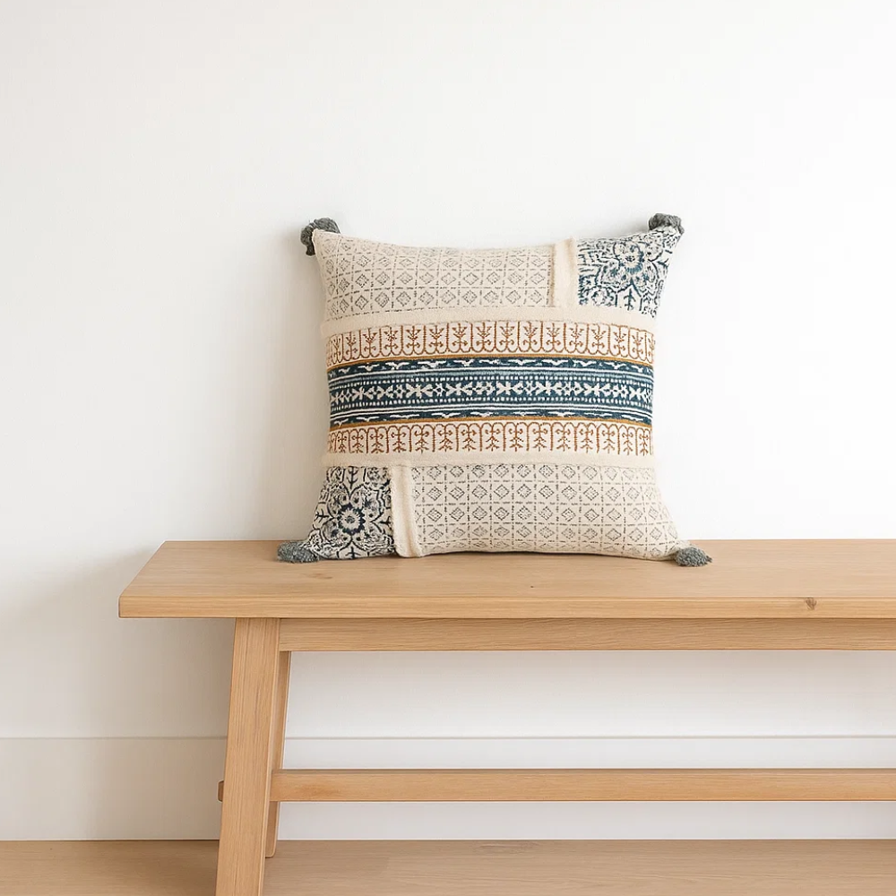 Maximal Block Printed Cotton Cushion Cover – Bold Tassel