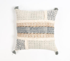 Make a Bold Statement with Soft Comfort This cotton cushion cover is designed for those who love color, texture, and personality. With a maximalist block-printed pattern and playful tassels, it turns any sofa or chair into a vibrant focal point. Whether you’re layering it with neutrals or mixing it with other prints, it brings energy and warmth to your space.