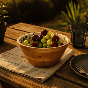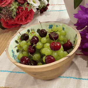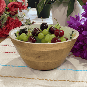 A mango wood bowl that blends nature, art, and sustainability. Add a touch of handcrafted elegance to your kitchen with ourBotanical Handpainted Mango Wood Bowl. Made from sustainably sourced mango wood and painted by hand with delicate botanical motifs, this bowl is a celebration of slow craft and natural beauty.