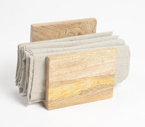 Keep your napkins neat and your table looking beautiful with thiswood napkin holder made from solid mango wood. Handcrafted by skilled artisans, it brings a warm, rustic charm to any kitchen or dining space. The natural wood grain gives each piece a unique look, so no two holders areexactly the same.