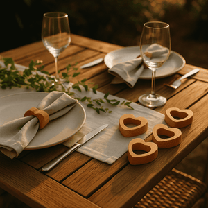 Crafted with love and intention, this set ofmango wood napkin rings brings warmth and charm to your table. Each ring is handcarved from sustainably sourced mango wood and features a delicate heart cut-out — a quiet nod to celebration, connection, and artisan craft. Lightweight, reusable, and biodegradable, thesefestive napkin rings are perfect for holiday hosting, everyday dining, or gifting with soul.
