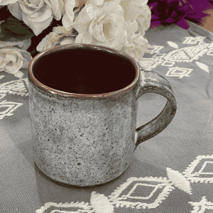 Sip slow, live warm. Thisclay coffee mug is handcrafted by North Indian artisans using traditional techniques and raw clay, then finished in a soft opal grey that blends beautifully with modern or rustic decor.