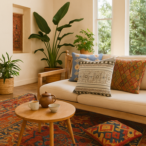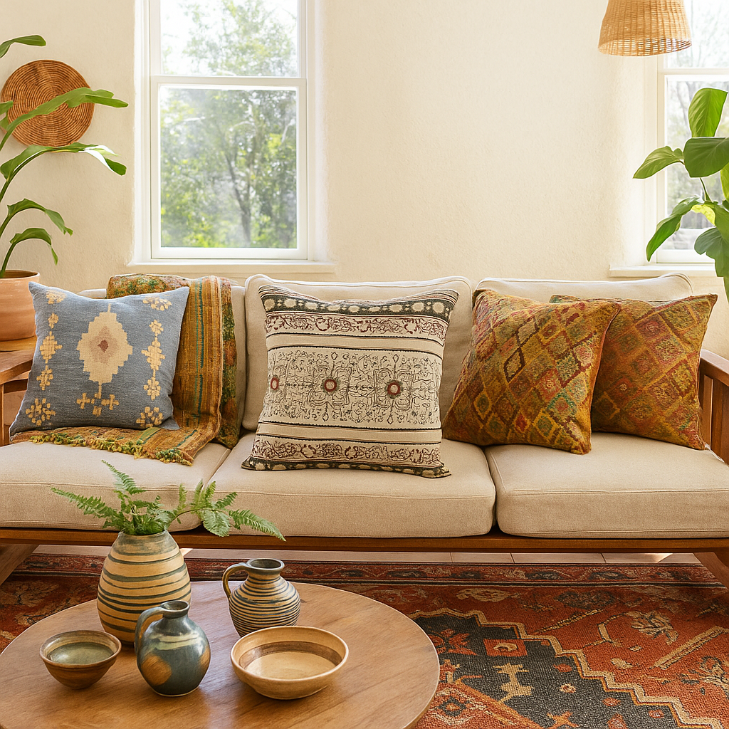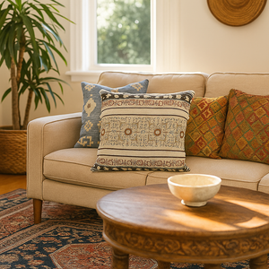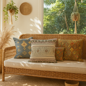 Handcrafted with Skill and Soul Made by rural artisans in North India, this sofa cover cushion cover uses the ancient craft of block printing. Each design is stamped by hand using carved wooden blocks, then finished with embroidery for added texture. The cotton fabric is soft and breathable, and the hidden zipper keeps the look clean and modern.