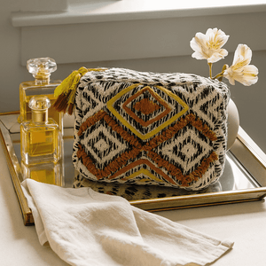 Embroidered Cotton Travel Pouch – Quilted Boho Organizer