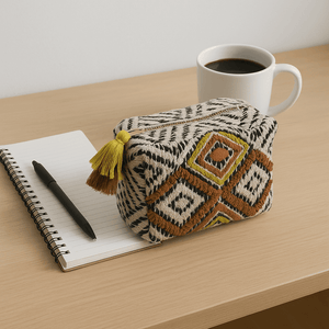 Whether you're packing light or organizing your tote, thistravel makeup pouch adds a pop of personality and keeps your things tidy. The multicolour palette suits both bright and earthy tones, making it a versatile companion for any journey.
