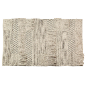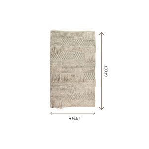 Crafted with rhythm and soul, thishandmade woven rug is a celebration of slow craft and soft texture. Woven on a traditional wooden loom by skilled artisans in North India, it takes days — sometimes weeks — to complete each piece. The tufted details are created by punching clusters of yarn through the fabric, adding depth and dimension to the flat weave.