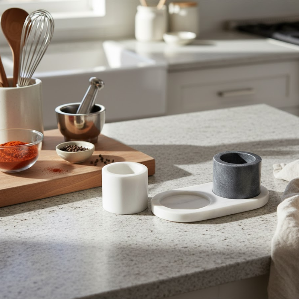 ✨ Add timeless elegance to your dining with thisturned contrast marble condiment set — a handcrafted piece that celebrates both tradition and modern design.