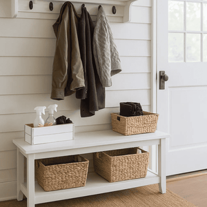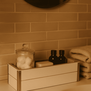 A storage box with soul and story. Tidy up your space with thishandcrafted mango wood storage box, designed to blend seamlessly into modern and farmhouse-style interiors. With its raw white finish and minimalist silhouette, this box adds quiet charm to kitchen counters, bedside tables, or styled shelves.