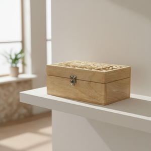 Crafted with Precision Artisans use sharp chisels to carve intricate patterns into the wood by hand.This traditional technique takes hours of focused work and results in detailed designs that are hard to replicate. Whether you're gifting or organizing, thiskeepsake box adds warmth and story to your space.