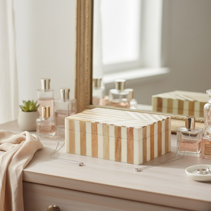 Neutral Striped MDF & Resin Jewelry Box – Handcrafted Wooden Jewelry Box for Women