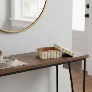 ✨ Add elegance and organisation to your space with thisneutral striped MDF & resin jewelry box — a handcrafted piece that blends durability, artistry, and timeless design.