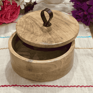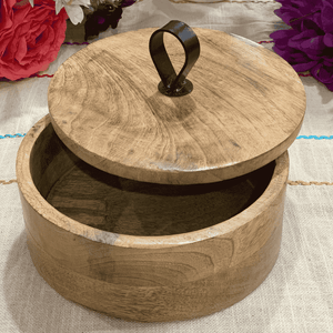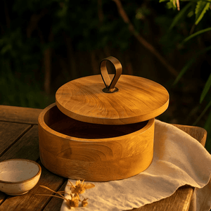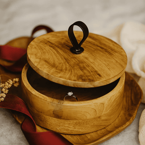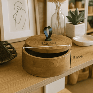 A wooden jewelry box that feels timeless, earthy, and full of story. Keep your treasures safe in ourRound Wooden Jewelry Box, a handcrafted piece made from solid wood by artisans in North India.With itssmooth round shape,light burnt finish, and subtle detailing, this box is more than storage—it’s a keepsake in itself.