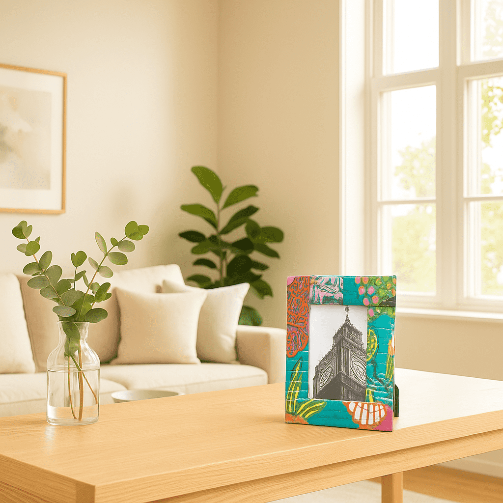 Each frame ishandmade by skilled artisans in India, using leftover fabric pieces that would otherwise go to waste.That means every frame is unique, with its own mix of patterns and stitching.It’s not just a photo frame—it’s a story of sustainability and craft.