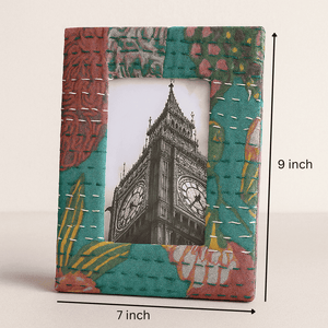 Turquoise Kantha Fabric Photo Frame – Handmade