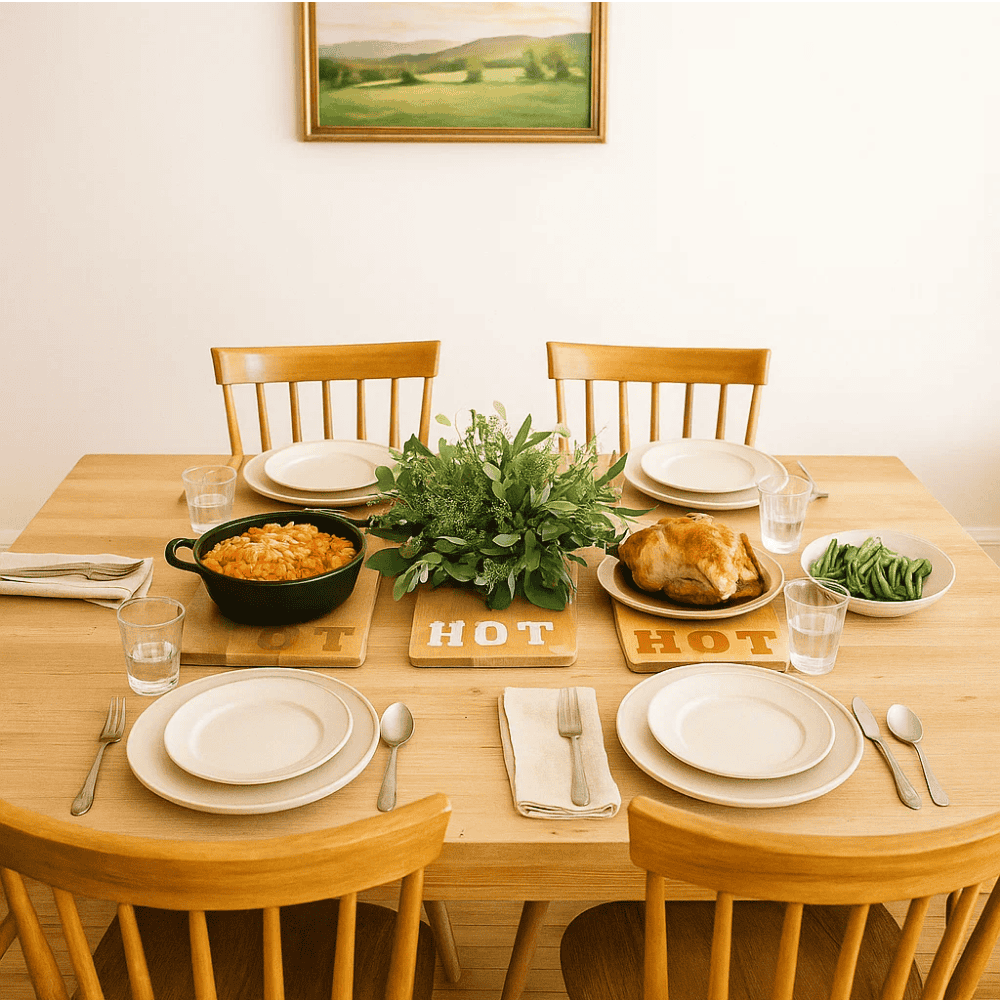 Each plate is carved from solid mango wood by skilled artisans in North India using traditional hand tools—no machines, no shortcuts. The natural grain and earthy tones make every piece unique, while the flat, sturdy design ensuresthey’re ready for anything from hot pots to serving platters.