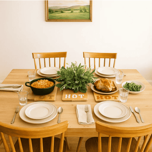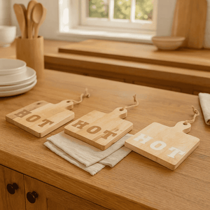 Serve with style, protect with purpose. Looking for a way to elevate your dining table while keeping it practical? OurHand Cut Mango Wood Hot Plates are the perfect blend of beauty and function. This set of three rustic wood platesis designed to protect your surfaces from heat while adding a warm, handcrafted touch to your kitchen or dining space.