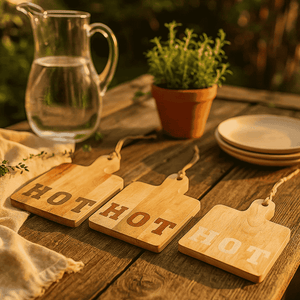 • Set of 3 handcrafted wood plates for hot dishes or serving
