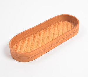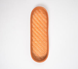Woven Bamboo Orange Oblong Tray