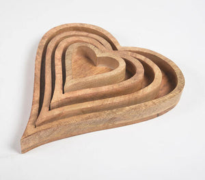 Add a little love to your space with this set of fourwood trays, each shaped like a heart and carved from natural mango wood.These trays are perfect for serving snacks,organizing small items, or decorating your home with a warm, handmade touch.