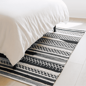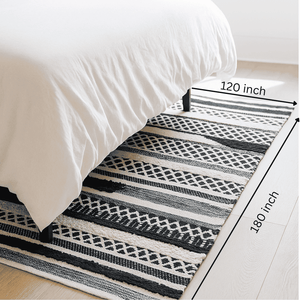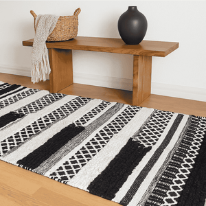 Style your space with softness and soul 🌿 — thismonochrome cotton rug is a quietstatement piece that speaks volumes.