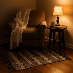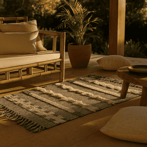 A handwoven rug that grounds your space in warmth and rhythm. Add texture, comfort, and handcrafted soul to your floors with ourTufted Handwoven Rug—a tactile piece made from natural cotton and shaped by skilled artisans using traditional looms and tufting techniques. Designed for cozy corners, styled bedrooms, or layered living rooms, this rug brings softness and story to your everyday rituals.