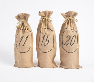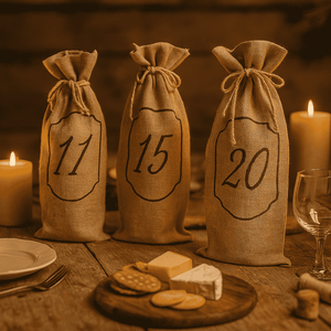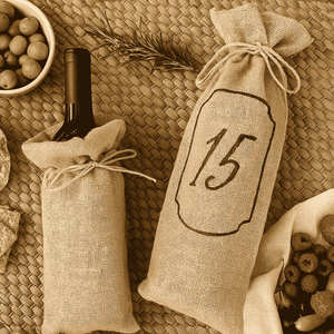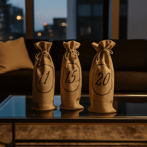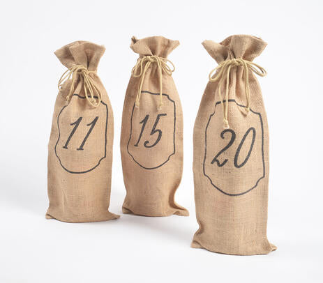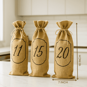 Wrap Your Wine in StyleThis set ofjute wine bags is handmade using strong, golden-hued plant fibers. Each bag features a printed number and a drawstring closure—perfect for gifting, hosting, or organizing your wine collection. The rustic texture and natural color give it a raw, earthy charm.