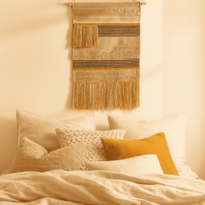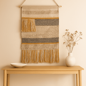 Crafted by skilled artisans in North India, this cotton wall hanging blends traditional weaving with modern boho flair. Whether you're styling a bedroom, hallway, or creative nook, it’s a tactile reminder that beauty lives in the handmade.